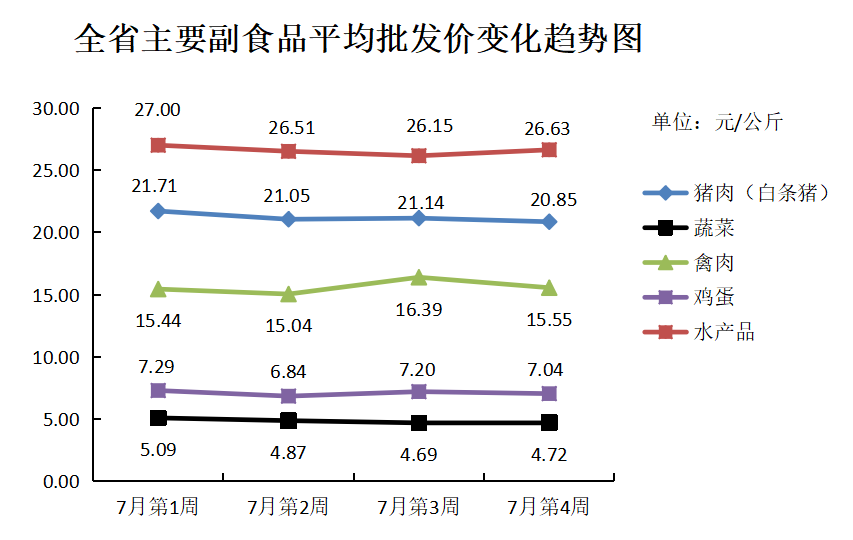 根据全省生活必需品监测系统,本周数据报告日(7月25日):