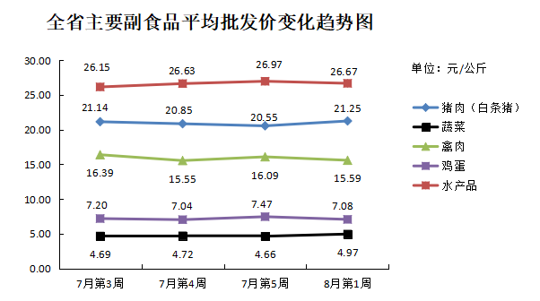 根据全省生活必需品监测系统,本周数据报告日(8月8日):