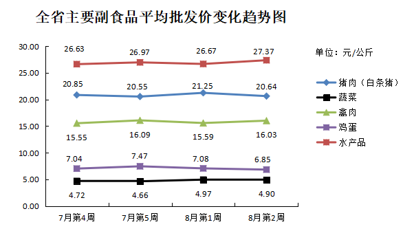 根据全省生活必需品监测系统,本周数据报告日(8月15日):