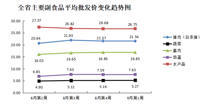 根据全省生活必需品监测系统,本周数据报告日(9月5日):