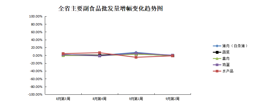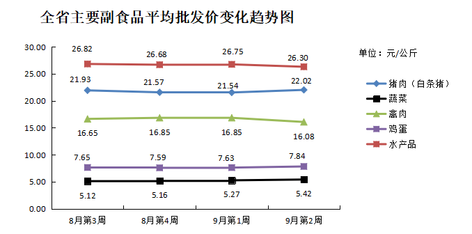 根据全省生活必需品监测系统,本周数据报告日(9月12日):
