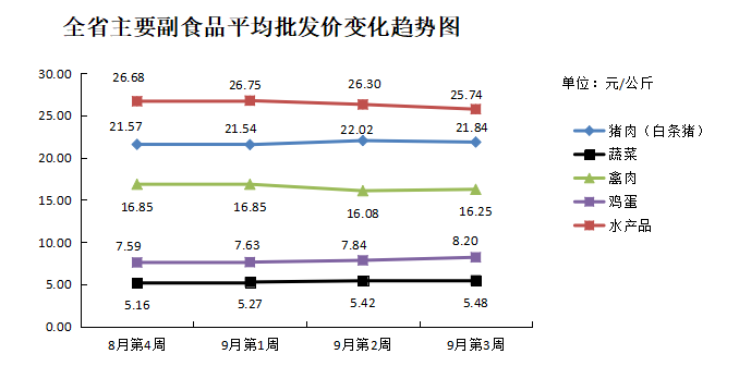 根据全省生活必需品监测系统,本周数据报告日(9月19日):
